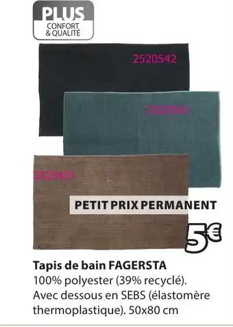 Actuellement en offre chez JYSK : FAGERSTA Tapis de bain ✅ Valable du 1-01 au 3-02.