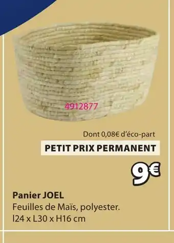 L'offre est disponible dans plusieurs magasins, vérifiez tous les produits pour obtenir le JOEL Panier le moins cher. Si vous souhaitez savoir si l'article est en vente avec une plus grosse remise dans un autre magasin, consultez la catégorie 'Meubles & Décoration'. Ces offres pourraient aussi vous intéresser : Panier, PANIER & Panier.