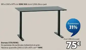 STAUNING Bureau bénéficie actuellement d'une réduction chez JYSK. Vous trouverez ici toutes les infos utiles sur les prix, la durée de validité et les conditions de l’offre. Pensez à consulter aussi d'autres offres et promotions similaires pour STAUNING Bureau afin d’acheter toujours au bon prix. La promo STAUNING Bureau est valable du 14-04-2026 au 11-05-2026. Offre terminée ? Pas de souci. D'autres offres sur ces produits sont peut-être déjà disponibles. Vous pouvez suivre cette catégorie de produits pour rester informé en cas de nouvelle promotion STAUNING Bureau chez JYSK. En comparant les offres, vous êtes sûr d’acheter au prix le plus bas possible.Questions fréquemment posées au sujet de STAUNING Bureau