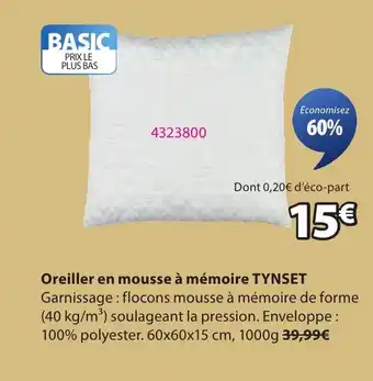 Actuellement en offre chez JYSK : TYNSET Oreiller en mousse à mémoire ✅ Valable du 1-01 au 3-02.