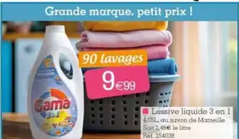 Cette Lessive liquide 3 en 1 est maintenant disponible chez Kandy. Découvrez toutes les promos en cours et profitez de réductions intéressantes. Commandez Lessive liquide 3 en 1 en ligne via le site officiel de Kandy ou achetez-la en magasin à un prix avantageux. Promocatalogues.fr réunit chaque jour les meilleures offres liées à Lessive liquide 3 en 1. Envie d’être informé en premier ? Activez l’alerte en cliquant sur la cloche pour recevoir une notification gratuite dès que ce produit revient en promotion.Questions fréquemment posées au sujet de Lessive liquide 3 en 1