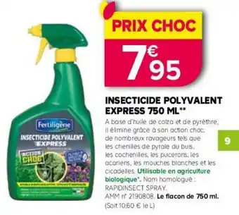L'offre est disponible dans plusieurs magasins, vérifiez tous les produits pour obtenir le Insecticide polyvalent express le moins cher. Si vous souhaitez savoir si l'article est en vente avec une plus grosse remise dans un autre magasin, consultez la catégorie 'Jardineries et Animaleries'. Ces offres pourraient aussi vous intéresser : Insecticide polyvalent concentré 250 ml, Désherbant polyvalent desherb' express & Fertiligène insecticide pucerons express.