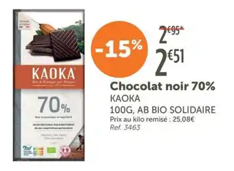 Chocolat noir 70% kaoka offres et promotions en ligne chez L'Eau Vive