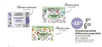 COSMO NATUREL Shampoing solide différentes propriétés offres et promotions en ligne chez L'Eau Vive