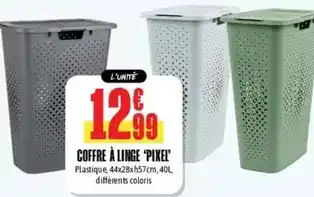 En plus de l'offre Coffre à linge 'pixel', L'incroyable propose une large gamme de produits. Consultez le Catalogue L'incroyable hebdomadaire pour découvrir les meilleures offres et promotions. En plus de Coffre à linge 'pixel', il y a aussi : Coffre à linge, Curver coffre à linge 56l softex & Pixel panier 1,5 L.