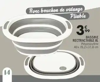 En plus de l'offre Bassine rectractable, La Foir'Fouille propose une large gamme de produits. Consultez le Catalogue La Foir'Fouille hebdomadaire pour découvrir les meilleures offres et promotions. En plus de Bassine rectractable, il y a aussi : La bassine, Bassine rétractable & BASSINE RONDE.