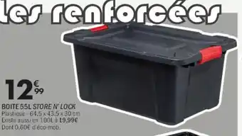 L'offre est disponible dans plusieurs magasins, vérifiez tous les produits pour obtenir le Boite store n' lock le moins cher. Si vous souhaitez savoir si l'article est en vente avec une plus grosse remise dans un autre magasin, consultez la catégorie 'Bazar et Déstockage'. Ces offres pourraient aussi vous intéresser : Boite 55l store n'lock, La boîte de rangement clip'n store & Le bac clip'n store.