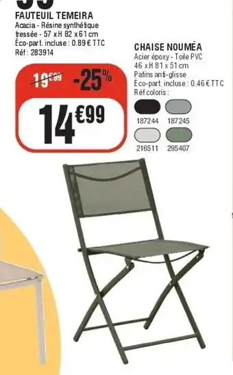 Actuellement en offre chez La Foir'Fouille : Chaise nouméa ✅ Valable du 2-03 au 8-03.