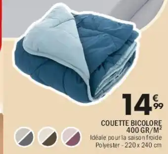 Quand Couette couette bicolore sera-t-elle en promotion ? Ou encore : "Est-ce que Couette couette bicolore sera en promotion la semaine prochaine ?" C’est une question fréquente. Beaucoup de consommateurs établissent leur liste de courses à l’avance. Pour cette raison, nous mettons en ligne les informations sur les promos à venir dès qu’elles sont connues. Cela vous permet de planifier vos achats et de faire de bonnes affaires. Consultez régulièrement notre site pour savoir si une nouvelle promo sur Couette couette bicolore arrive bientôt chez La Foir'Fouille.Questions fréquemment posées au sujet de Couette couette bicolore