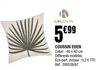 Quand COUSSIN EDEN sera-t-elle en promotion ? Ou encore : "Est-ce que COUSSIN EDEN sera en promotion la semaine prochaine ?" C’est une question fréquente. Beaucoup de consommateurs établissent leur liste de courses à l’avance. Pour cette raison, nous mettons en ligne les informations sur les promos à venir dès qu’elles sont connues. Cela vous permet de planifier vos achats et de faire de bonnes affaires. Consultez régulièrement notre site pour savoir si une nouvelle promo sur COUSSIN EDEN arrive bientôt chez La Foir'Fouille.Questions fréquemment posées au sujet de COUSSIN EDEN