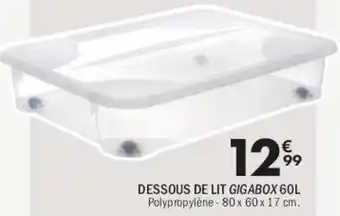 L'offre est disponible dans plusieurs magasins, vérifiez tous les produits pour obtenir le Dessous de lit gigabox le moins cher. Si vous souhaitez savoir si l'article est en vente avec une plus grosse remise dans un autre magasin, consultez la catégorie 'Bazar et Déstockage'. Ces offres pourraient aussi vous intéresser : Dessous de lit gigabox 60l, Le rangement dessous de lit 99 gigabox & Le dessous de lit.