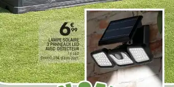 En plus de l'offre Lampe solaire 3 panneaux led avec detecteur 74 led, La Foir'Fouille propose une large gamme de produits. Consultez le Catalogue La Foir'Fouille hebdomadaire pour découvrir les meilleures offres et promotions. En plus de Lampe solaire 3 panneaux led avec detecteur 74 led, il y a aussi : Lampe luciole solaire led, La lampe led & La lampe néon led.