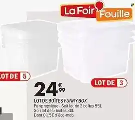 Découvrez les produits les moins chers parmi toutes les offres ! Si vous voulez savoir si La Foir'Fouille propose la meilleure remise pour Lot de boites, comparez-la sur la page thèmes ou avec d'autres magasins.