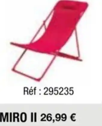 L'offre est disponible dans plusieurs magasins, vérifiez tous les produits pour obtenir le MIRO II le moins cher. Si vous souhaitez savoir si l'article est en vente avec une plus grosse remise dans un autre magasin, consultez la catégorie 'Bazar et Déstockage'. Ces offres pourraient aussi vous intéresser : MIRO II, CHILIENNE MIRO II & JUPITER II.