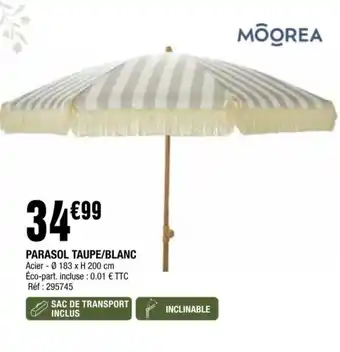 Le prix de l'offre PARASOL TAUPE,BLANC se trouve également en haut de la page, ainsi que la date à laquelle l'offre est disponible. Vous pouvez également vérifier les prix dans le Catalogue La Foir'Fouille actuel ou sur le site Internet de La Foir'Fouille. Les offres vous permettent d'acheter les produits La Foir'Fouille au prix le plus bas.