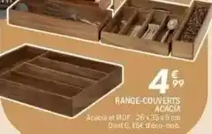 En plus de l'offre Range-couverts, La Foir'Fouille propose une large gamme de produits. Consultez le Catalogue La Foir'Fouille hebdomadaire pour découvrir les meilleures offres et promotions. En plus de Range-couverts, il y a aussi : Range-couverts acacia, Range bûches extensible & Ruecab range buches.
