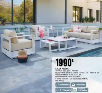 Le prix de l'offre SALON ALLURE se trouve également en haut de la page, ainsi que la date à laquelle l'offre est disponible. Vous pouvez également vérifier les prix dans le Catalogue La Foir'Fouille actuel ou sur le site Internet de La Foir'Fouille. Les offres vous permettent d'acheter les produits La Foir'Fouille au prix le plus bas.
