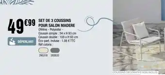 En plus de l'offre SET DE 3 COUSSINS POUR SALON MADERE, La Foir'Fouille propose une large gamme de produits. Consultez le Catalogue La Foir'Fouille hebdomadaire pour découvrir les meilleures offres et promotions. En plus de SET DE 3 COUSSINS POUR SALON MADERE, il y a aussi : SALON MADERE, SALON MADERE & MADÈRE.