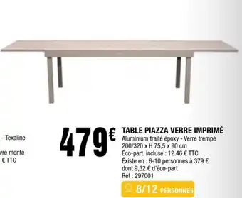 TABLE PIAZZA VERRE IMPRIMÉ offres et promotions en ligne chez La Foir'Fouille