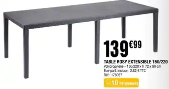 TABLE ROSY EXTENSIBLE 150/220 offres et promotions en ligne chez La Foir'Fouille
