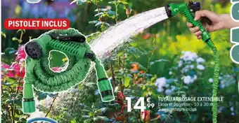 En plus de l'offre Tuyau arrosage extensible, La Foir'Fouille propose une large gamme de produits. Consultez le Catalogue La Foir'Fouille hebdomadaire pour découvrir les meilleures offres et promotions. En plus de Tuyau arrosage extensible, il y a aussi : Carrefour - tuyau extensible, Carrefour tuyau extensible & Tuyau extensible CARREFOUR.