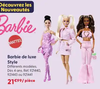 Actuellement en offre chez La Grande Récré : Mattel barbie de luxe style ✅ Valable du 8-04 au 28-04.