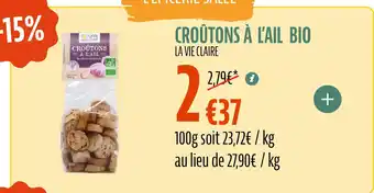 LA VIE CLAIRE Croûtons à l'ail bio offres et promotions en ligne chez La Vie Claire