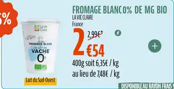 LA VIE CLAIRE Fromage blanc 0% de mg bio offres et promotions en ligne chez La Vie Claire