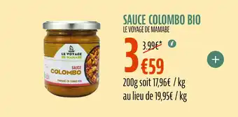 Offre LE VOYAGE DE MAMABE Sauce colombo bio chez La Vie Claire