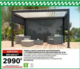 Dim - pergola biocimatique autoportante + 3 stores prima en au gris anthracite 12 m