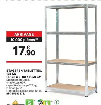 Actuellement en offre chez Leroy Merlin : Étagère 4 tablettes ✅ Valable du 29-04 au 19-05.