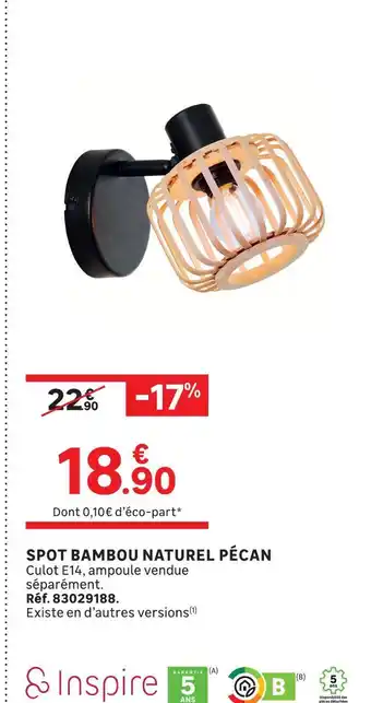 Actuellement en offre chez Leroy Merlin : Inspire spot bambou naturel pécan ✅ Valable du 1-04 au 28-04.