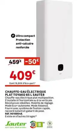 Sauter - chauffe-eau électrique plat toyako 65l : offres et promos Leroy Merlin à découvrir