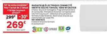 Actuellement, Sauter radiateur électrique connecté inertie sèche tahual 1000 w est en promotion chez Leroy Merlin. Toutes les informations utiles comme le prix, les conditions et la durée de validité sont affichées sur cette page. Consultez également les promotions similaires pour Sauter radiateur électrique connecté inertie sèche tahual 1000 w, afin de faire le meilleur choix. La promo Sauter radiateur électrique connecté inertie sèche tahual 1000 w est valable du 01-04-2026 au 28-04-2026. Si elle est expirée, regardez les autres offres équivalentes. Vous pouvez aussi suivre cette catégorie de produit pour être alerté lorsqu’une nouvelle promotion Sauter radiateur électrique connecté inertie sèche tahual 1000 w apparaît chez Leroy Merlin.Questions fréquemment posées au sujet de Sauter radiateur électrique connecté inertie sèche tahual 1000 w