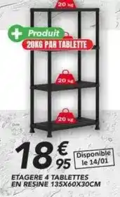 Offre Etagere 4 tablettes en resine 135x60x30cm chez Les Briconautes