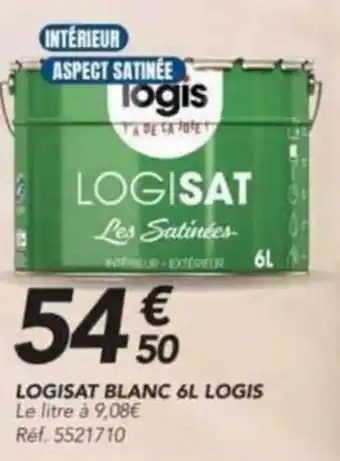 L'offre est disponible dans plusieurs magasins, vérifiez tous les produits pour obtenir le LOGISAT BLANC LOGIS le moins cher. Si vous souhaitez savoir si l'article est en vente avec une plus grosse remise dans un autre magasin, consultez la catégorie 'Bricolage'. Ces offres pourraient aussi vous intéresser : LOGISAT Peinture blanc, 1664 Blanc & Thermomètre Blanc.