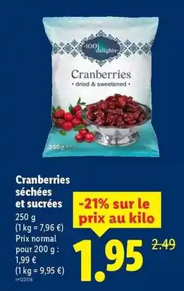 Offre 100 delights - cranberries séchées et sucrées chez Lidl