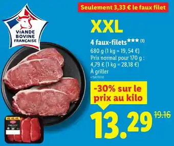 En plus de l'offre 4 faux-filets, Lidl propose une large gamme de produits. Consultez le Catalogue Lidl hebdomadaire pour découvrir les meilleures offres et promotions. En plus de 4 faux-filets, il y a aussi : 4 faux-filets, Viande bovine 4 faux filets à griller & Faux-filet charal.