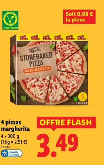 En plus de l'offre 4 pizzas margherita, Lidl propose une large gamme de produits. Consultez le Catalogue Lidl hebdomadaire pour découvrir les meilleures offres et promotions. En plus de 4 pizzas margherita, il y a aussi : Pizza Margherita, Alfredo 2 pizzas bolognaise & 2 pizzas jambon fromage.