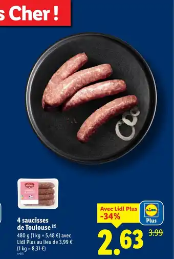 Actuellement en offre chez Lidl : 4 saucisses de Toulouse ✅ Valable du 12-02 au 18-02.