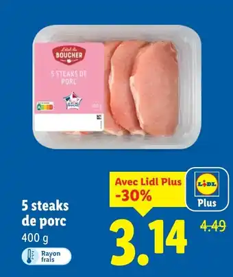 Actuellement en offre chez Lidl : 5 steaks de porc ✅ Valable du 22-01 au 28-01.