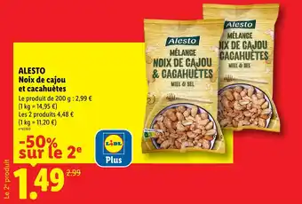 Actuellement en offre chez Lidl : Alesto mélange noix de cajou & cacahuètes miel & sel ✅ Valable du 16-04 au 22-04.