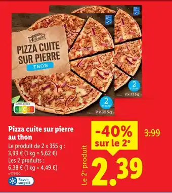 Actuellement en offre chez Lidl : Alfredo pizza cuite sur pierre au thon ✅ Valable du 19-02 au 25-02.