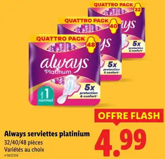 Actuellement en offre chez Lidl : Always serviettes platinum ✅ Valable du 15-01 au 21-01.
