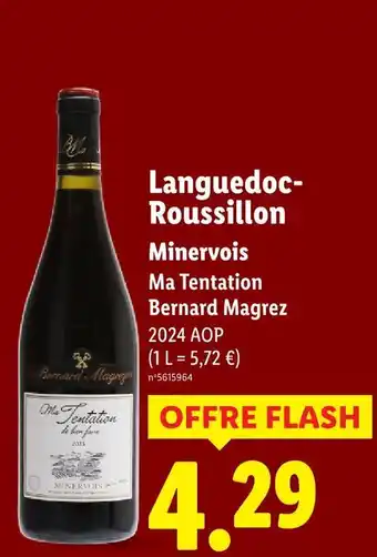 Actuellement en offre chez Lidl : Bernard magrez minervois ma tentation ✅ Valable du 5-03 au 11-03.
