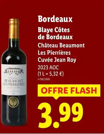 Actuellement en offre chez Lidl : Bordeaux blaye côtes de bordeaux ✅ Valable du 5-03 au 11-03.