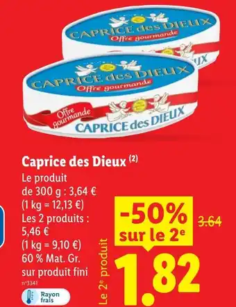 En plus de l'offre CAPRICE DES DIEUX, Lidl propose une large gamme de produits. Consultez le Catalogue Lidl hebdomadaire pour découvrir les meilleures offres et promotions. En plus de CAPRICE DES DIEUX, il y a aussi : Caprice des dieux caprice des dieux, Caprice des dieux caprice des dieux & Caprice des dieux.