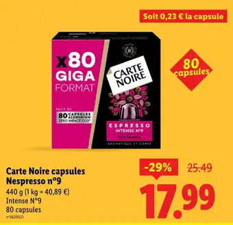 Offre Carte noire capsules nespresso intense n°9 chez Lidl
