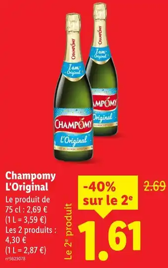 En plus de l'offre Champomy l'original, Lidl propose une large gamme de produits. Consultez le Catalogue Lidl hebdomadaire pour découvrir les meilleures offres et promotions. En plus de Champomy l'original, il y a aussi : CHAMPOMY L'Original, CHAMPOMY L'original & Champomy l’original.