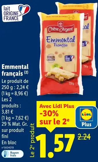 Actuellement en offre chez Lidl : CHENE ARGENT Emmental Français ✅ Valable du 3-01 au 7-01.